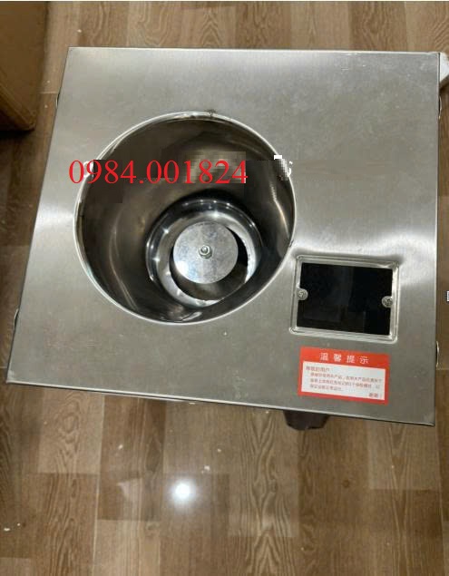 Phễu chứa nguyên liệu được thiết kế rộng rãi. Inox sáng bóng đảm bảo vệ sinh, chống ăn mòn.